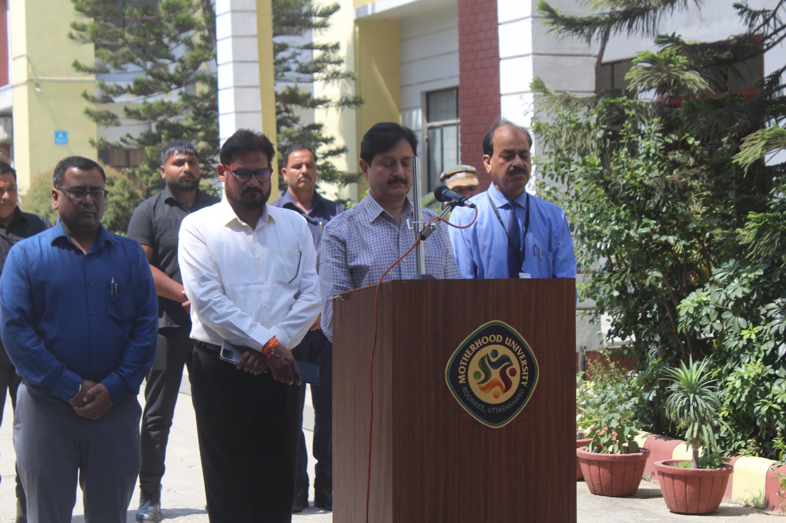 The teachers, officials, staff members, and students of Motherhood University collectively condemned the attack in strong words. The condolence program witnessed the presence of Administrative Director Mr. Deepak Sharma, Registrar Mr. Ajay Gopal Sharma, Controller of Examinations Mr. Anupam Gupta, Deans of all faculties, and distinguished members of the teaching staff.