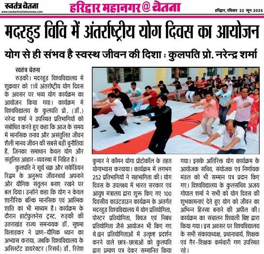 The Yoga Competition, held as part of the IDY 2025 celebrations, witnessed enthusiastic participation from students across various faculties. Participants demonstrated yoga postures, breathing techniques, and mindfulness practices that highlighted the importance of physical fitness, mental clarity, and spiritual balance.